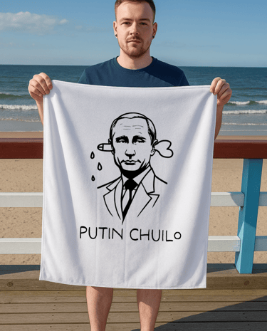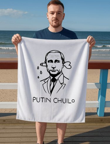 Todėl mūsų kolekcijos žvaigždė – rankšluostis su satyrine iliustracija „Putin chuilo“. Tai ne tik linksmas dizainas – tai pareiškimas. Prieš karą. Prieš diktatorių. Už laisvę. Už tiesą.